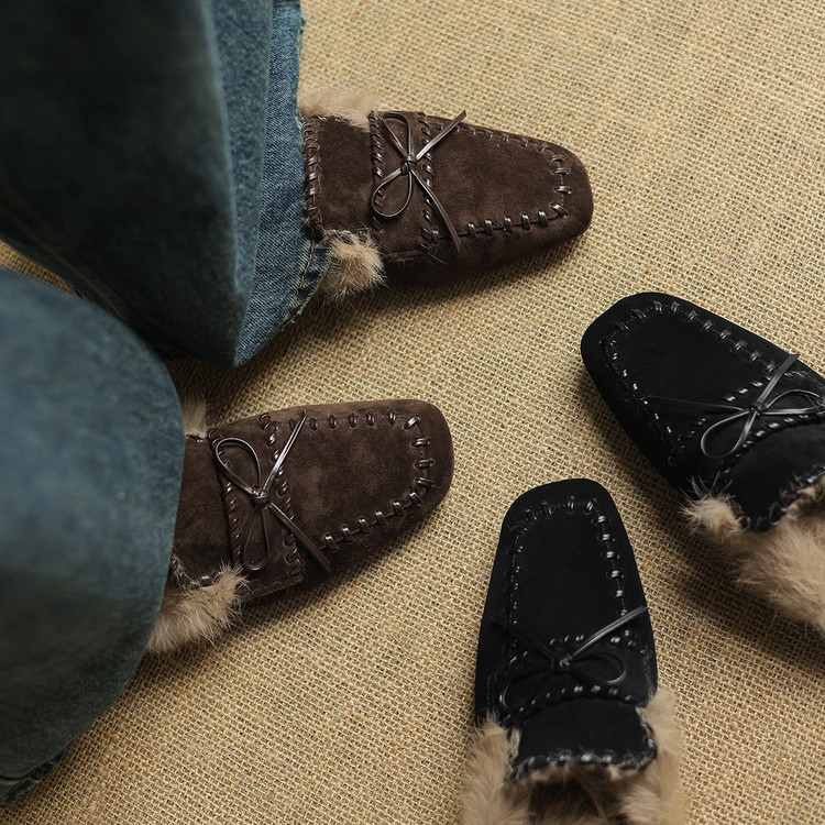 2025冬季新款兔毛拖鞋/头层羊翻皮+兔毛/数据款