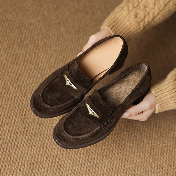 2025冬季新款加绒乐福鞋/头层羊翻皮+兔毛鞋垫/两种版本/