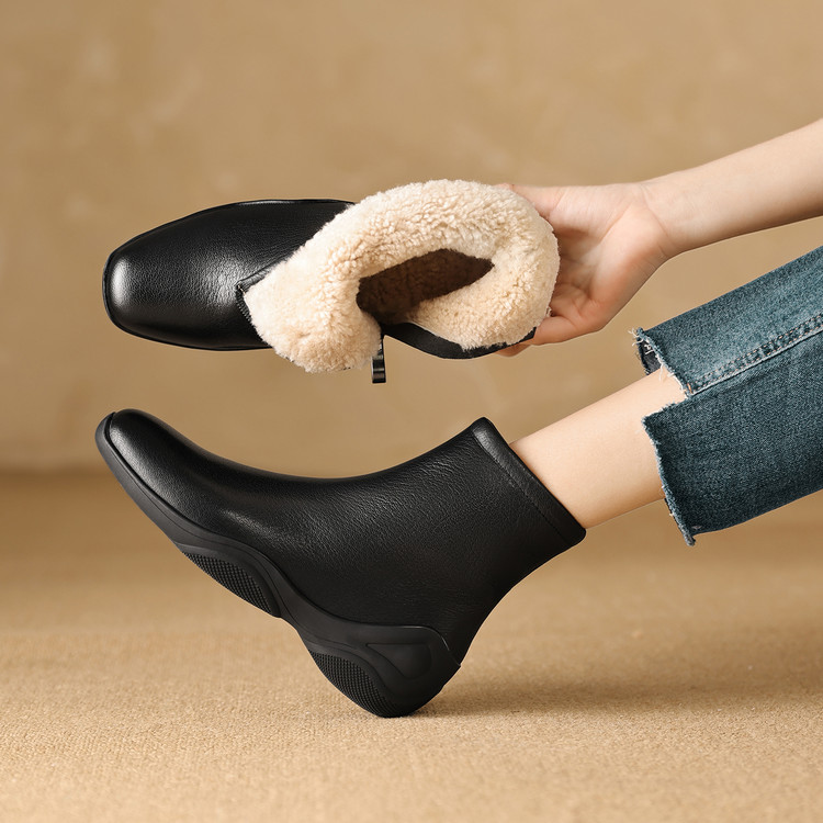 头层羊皮短靴,保暖羊羔毛厚底靴.假一赔十