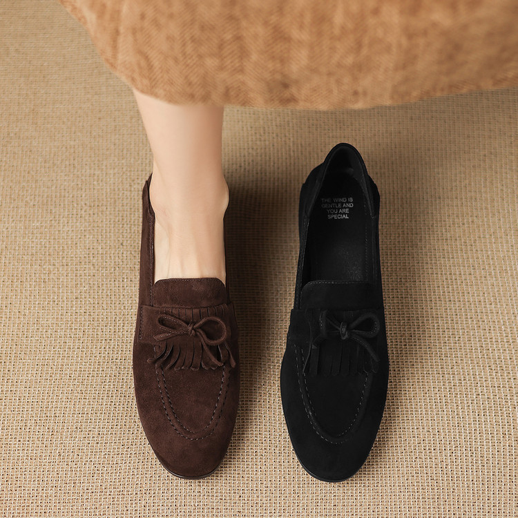 小圆头流苏蝴蝶结羊翻皮里外全皮深口加绒单鞋保暖冬季必备