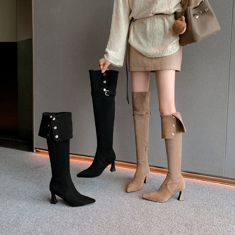 【一鞋两穿】高跟过膝靴女 两穿翻折显瘦增高长靴 百搭弹力女靴 数据已测 上架即卖