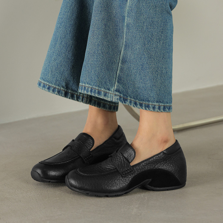 圆头深口厚底运动大底头层羊皮一脚蹬单鞋