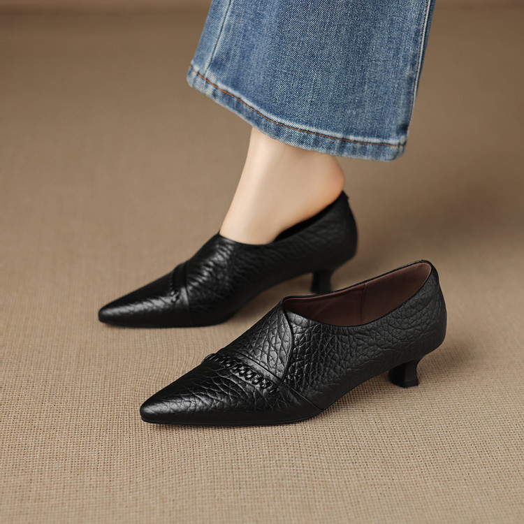 大象纹5cm设计感尖头单鞋职场通勤一脚蹬细跟高跟鞋