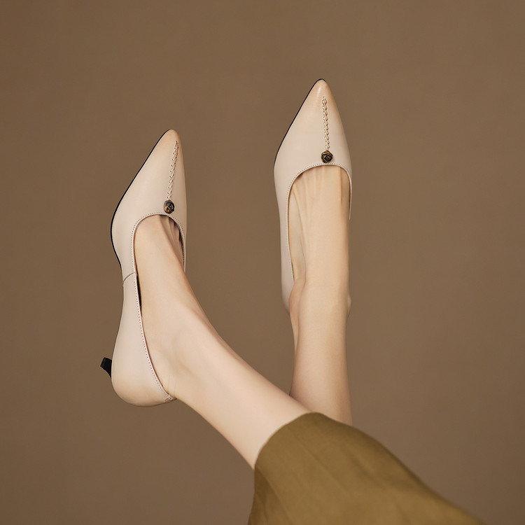 尖头通勤山茶花精致单鞋里外全皮舒适透气低跟百搭浅口单鞋
