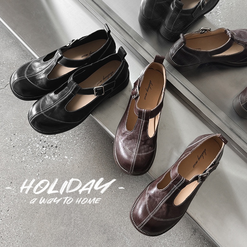 秋季新款水洗皮大头乐福鞋~玛丽珍单鞋