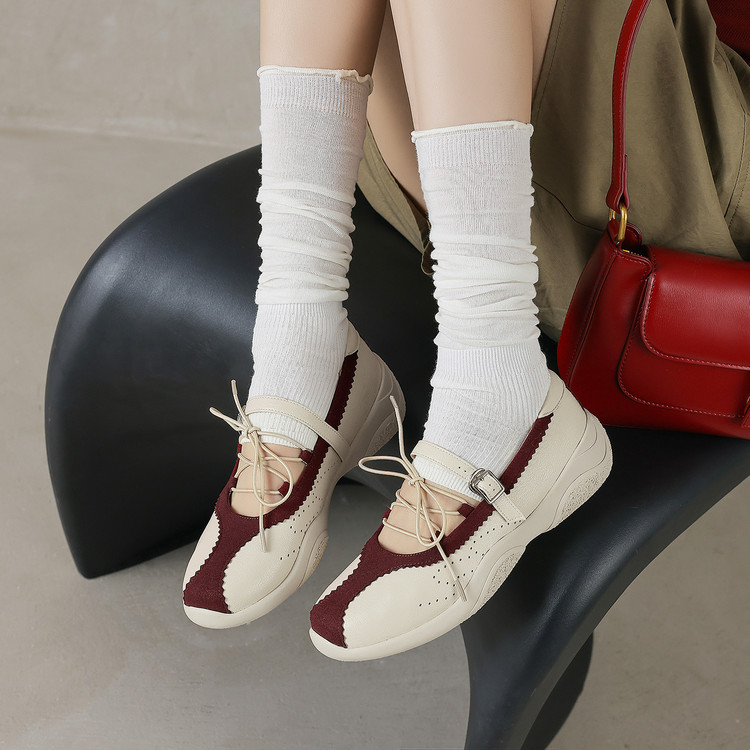2025年秋新款平底拼色复古平底拼色复古芭蕾舞鞋女