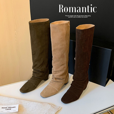 时尚款,小方头褶皱内增高长靴