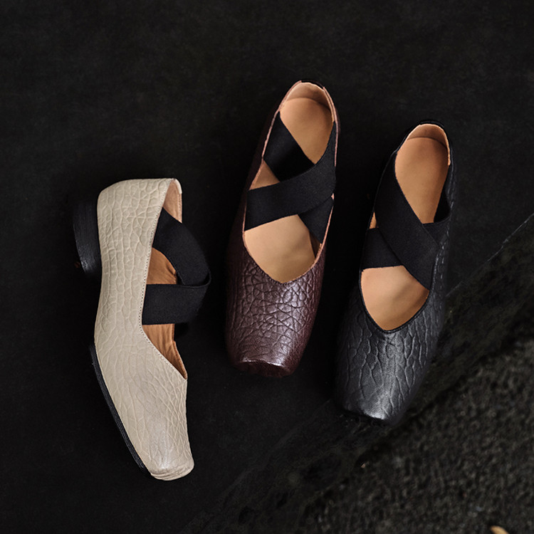 流量金典款 四季鞋 复古芭蕾鞋 猪鼻子单鞋平底秋冬新款交叉绑带