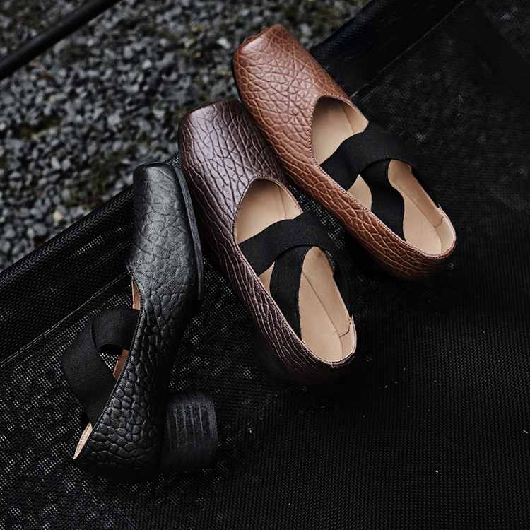 同款 复古芭蕾鞋中跟真皮秋冬新款一脚蹬玛丽珍单鞋猪鼻子猪头鞋高跟