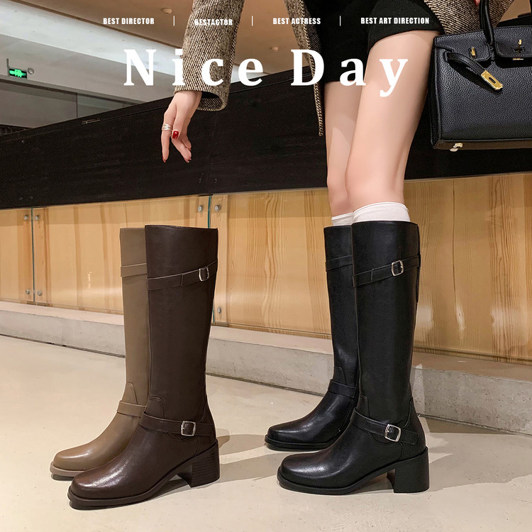 现货~~高筒骑士靴 粗跟 圆头