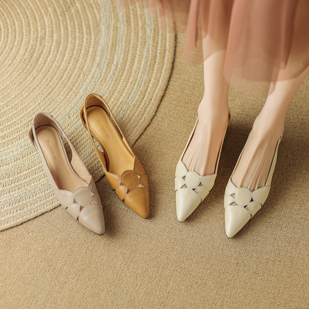 真皮镂空复古设计感浅口凉鞋