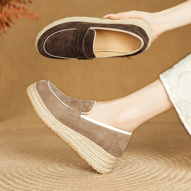里外全头层皮 2025春季新款厚底深口草编乐福鞋!!