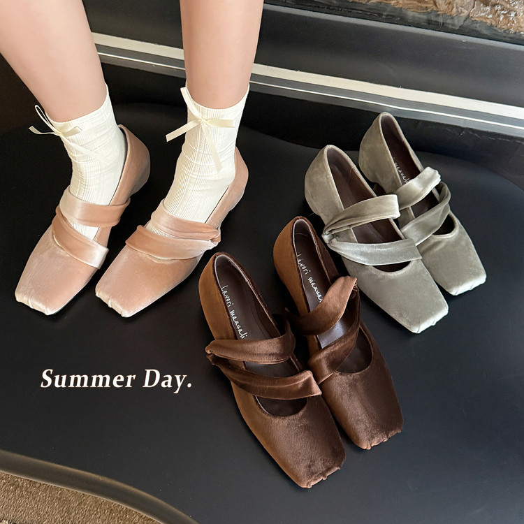 现货 现货 26年爆款金丝绒内增高纽带芭蕾舞单鞋