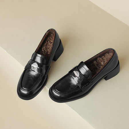 K390爆款乐福鞋加毛 商场同款葡萄妈苏茵茵同款 简约 百搭里外全皮大码34-43码 现货