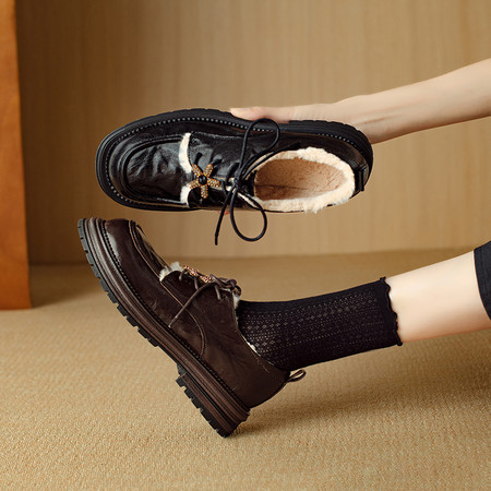 爆款升级加毛里 春秋冬季新款羊皮系带英伦风复古小皮鞋 里外全头层皮 现货 40码不加钱可以退换