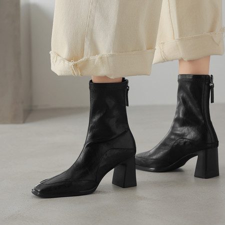 头层羊皮拼接弹力靴通勤短靴瘦瘦靴短靴