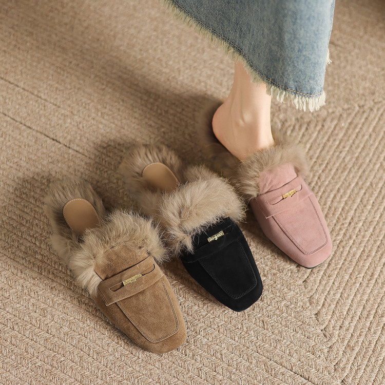 2025冬季新款羊翻皮兔毛拖鞋/三色入/数据款上架即卖/