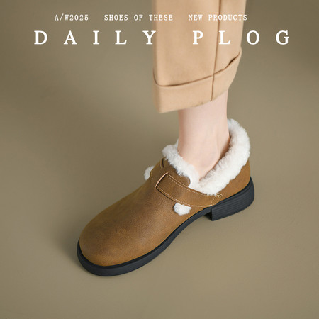 学院风羊皮毛一体勃肯鞋 真皮羊皮毛一体乐福鞋豆豆鞋