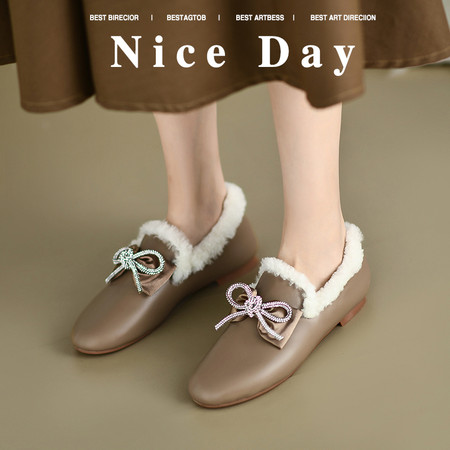 学院风羊皮毛一体勃肯鞋 真皮羊皮毛一体乐福鞋豆豆鞋