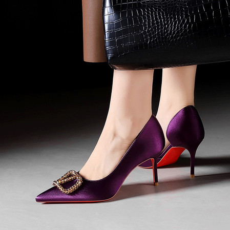 欧美风性感侧镂空高跟鞋女金属水钻V扣尖头细跟单鞋女